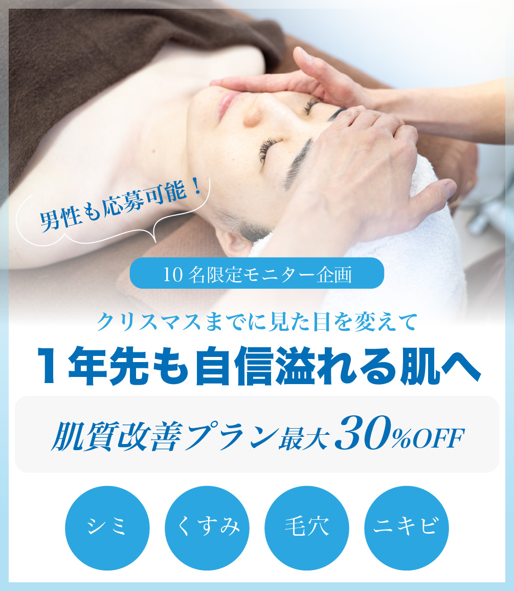ニキビ(ニキビ跡)・敏感肌・アトピー肌・しみ・しわ・毛穴の黒ずみなど、多様なお悩みに対応し、一人ひとりの肌質や症状に合わせた丁寧なカウンセリングを行ったうえで、最適な施術プランをご提案いたします。